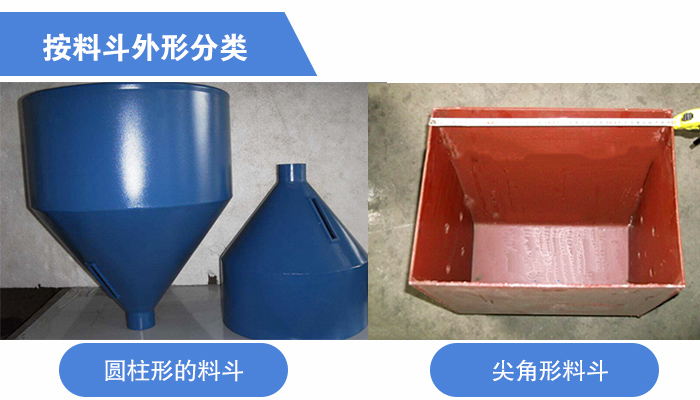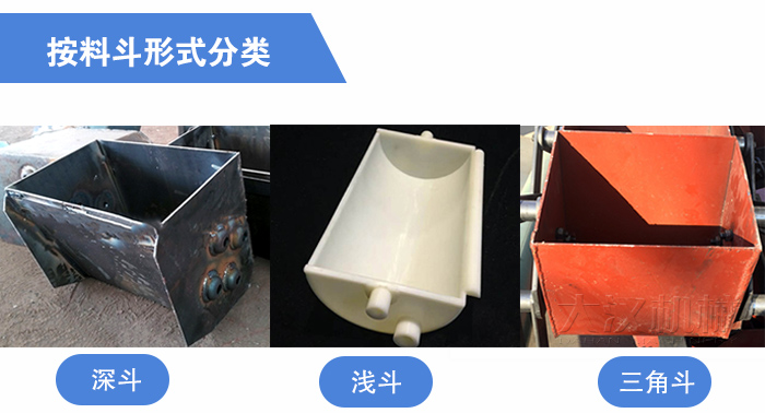 料斗型式如分為:淺斗、深斗和三角形斗。淺斗:斗口與后壁夾角小,可裝的物料少,但卸料容易。適用于運(yùn)送潮濕、粘性等流動(dòng)性差的物料如:水泥、濕砂、石膏粉等。深料斗和淺料斗多由鋼板焊接或直接沖壓而成,也可用可鍛鑄鐵鑄造而成,為減輕料斗自重,還可采用玻璃鋼制成。