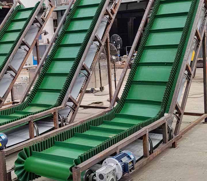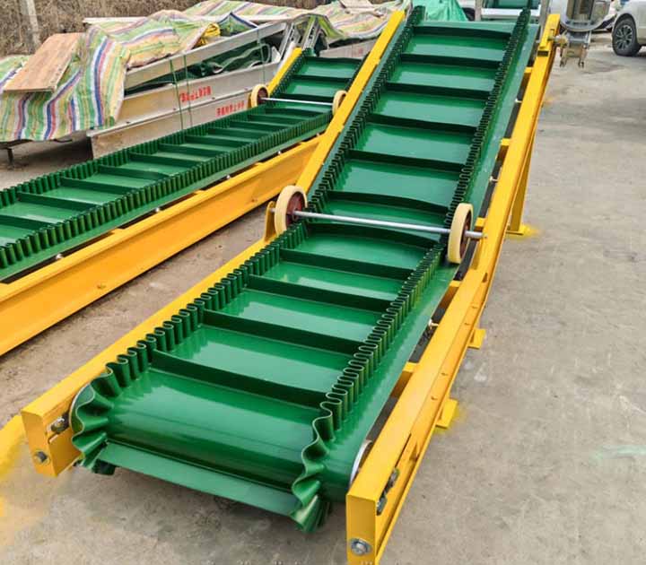 1.擋邊帶式輸送機(jī)為一般用途的散狀物料連續(xù)輸送設(shè)備,采用的是具有波狀擋邊和橫隔板的輸送帶。因此,特別適用于大傾角輸送。