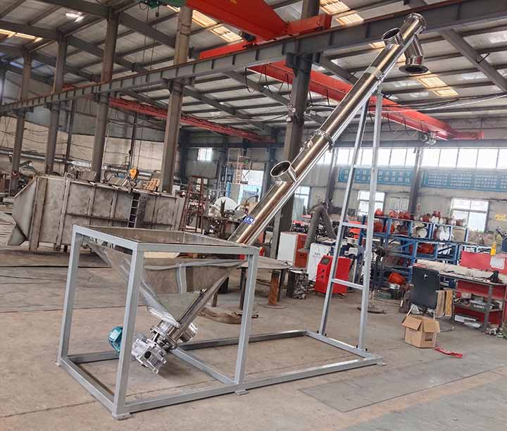 產(chǎn)品簡介:螺桿上料機能水平、傾斜或垂直輸送粉狀、顆粒狀及小塊狀物料,輸送量可達244立方/時,長度可達4-70米,大漢螺桿上料機可根據(jù)輸送物料不同采用有軸和無軸設計,還可選用碳鋼和不銹鋼兩種材質.